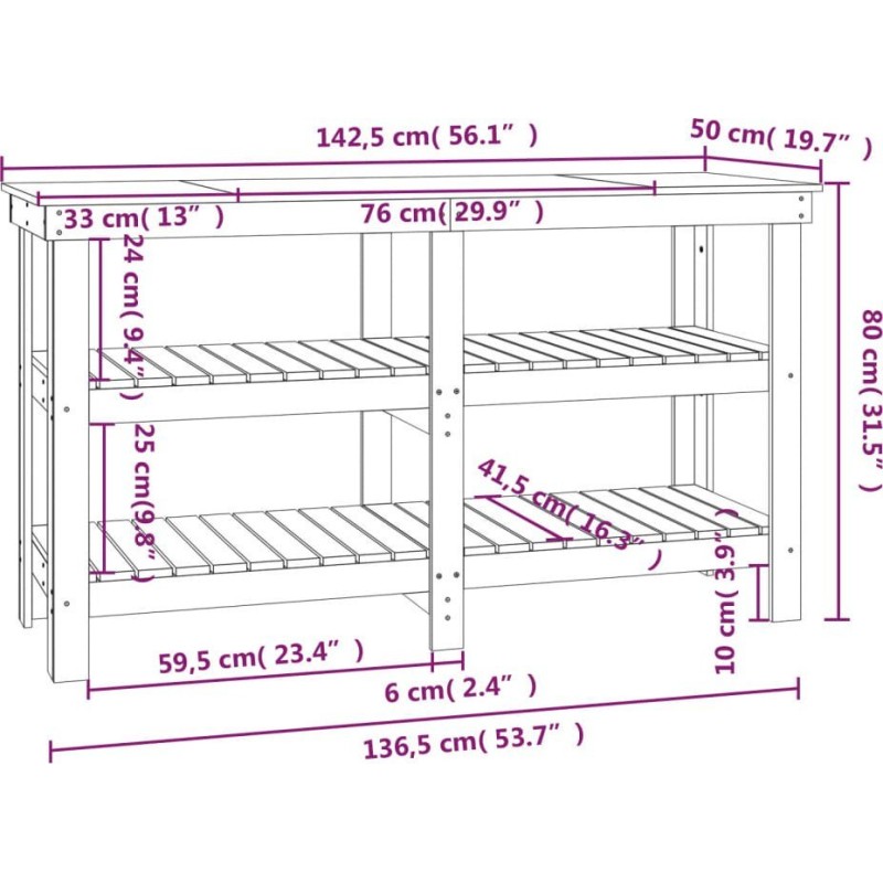 • Viel Stauraum: Dieser Arbeitstisch mit Regalen bietet viel Platz zum Aufbewahren und Ordnen Ihrer Werkzeuge, damit diese leicht zugänglich sind.
