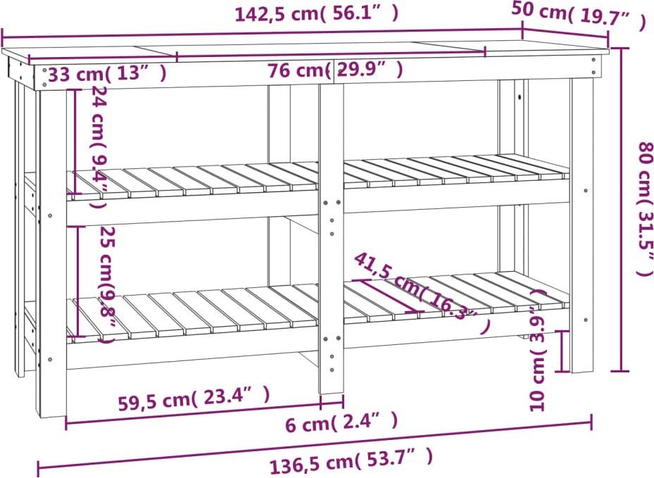 • Viel Stauraum: Dieser Arbeitstisch mit Regalen bietet viel Platz zum Aufbewahren und Ordnen Ihrer Werkzeuge, sodass diese leicht zugänglich sind.