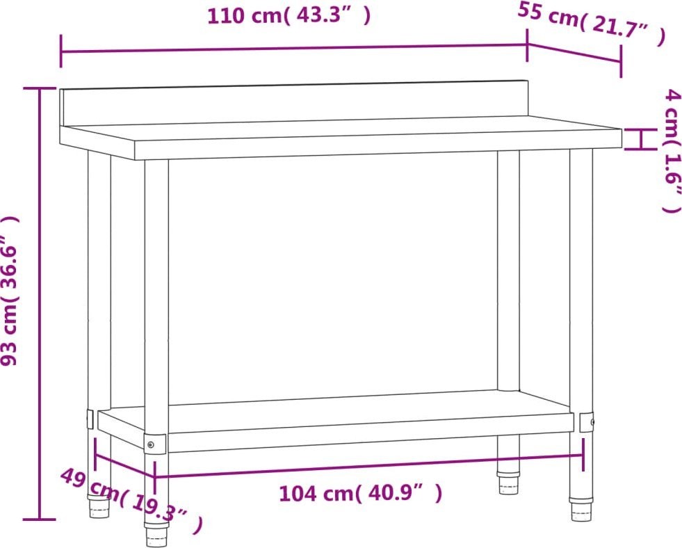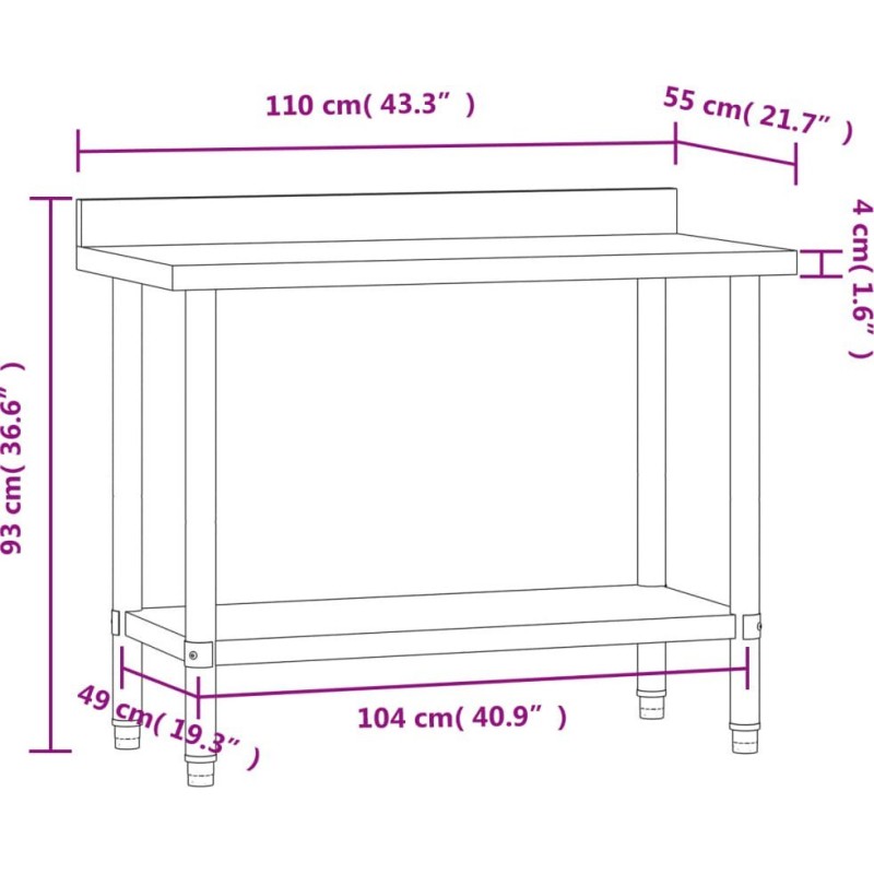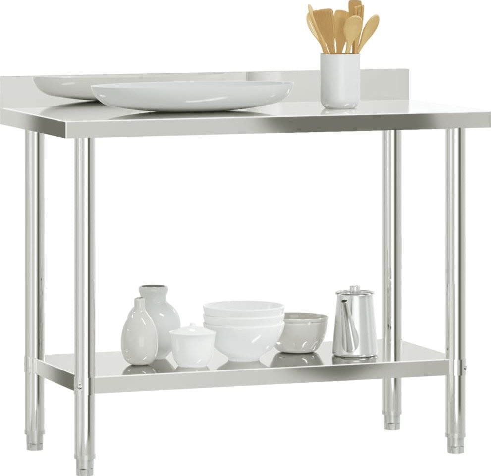 vidaXL Küchentisch mit Aufkantung, 110 x 55 x 93 cm, Edelstahl