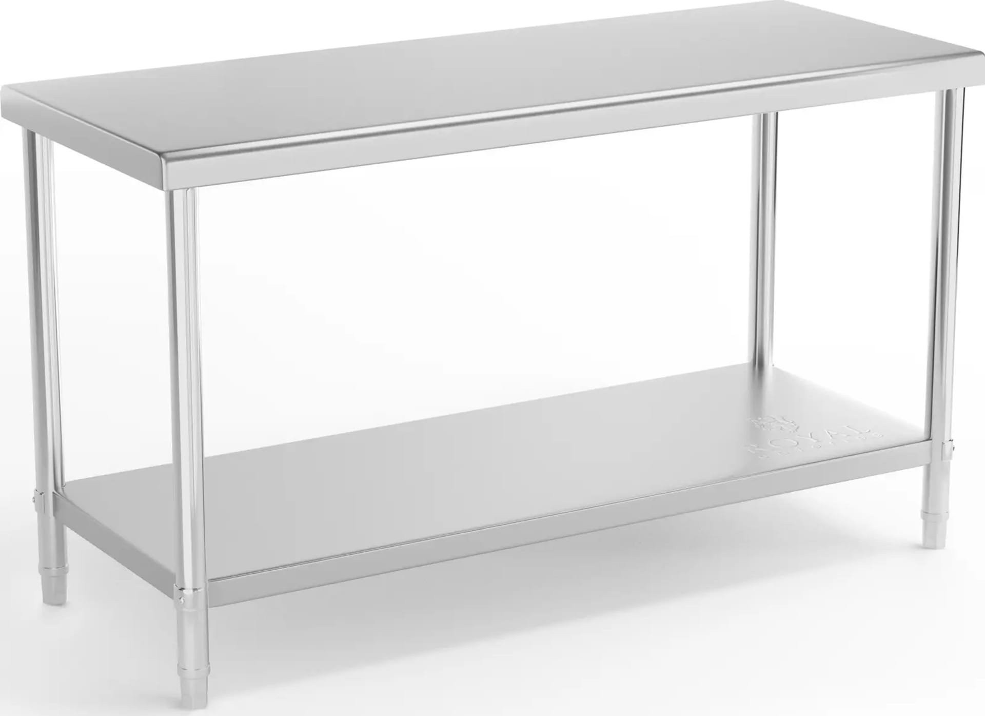 Royal Catering Arbeitsplatte aus Stahl mit Ablage, 150 x 60 cm, bis 230 kg