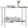 • Robuste und stabile Konstruktion: Der Arbeitstisch ist aus Edelstahl gefertigt, was ihn korrosions- und rostbeständig macht und jahrelangen zuverlässigen Einsatz gewährleistet. Die glatte Oberfläche ist leicht zu reinigen und zu pflegen und bietet einen hygienischen Ort für die Zubereitung von Speisen.