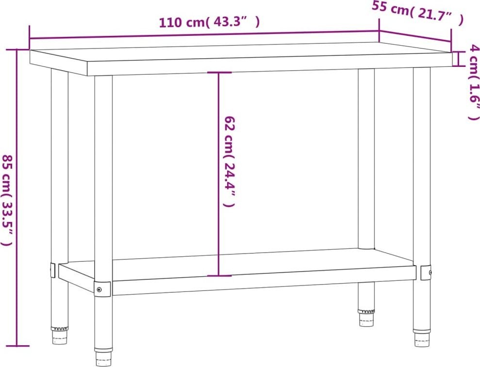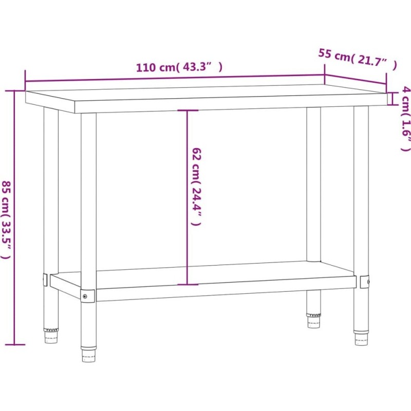 vidaXL Küchentisch, 110 x 55 x 85 cm, Edelstahl