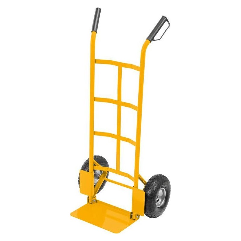 Transportwagen für Mühlen mit Luftreifen. Die klappbare Ladefläche erleichtert den Transport und die Lagerung.