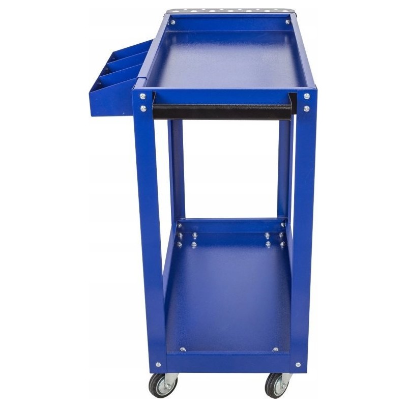 Der Wagen verfügt außerdem über vier Rollen, die das Bewegen in der Werkstatt oder Garage erleichtern. Dank dieser Rollen rollt der Wagen sanft und stabil, selbst bei hoher Beladung, was ihn zu einem äußerst praktischen Werkzeug macht.