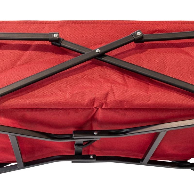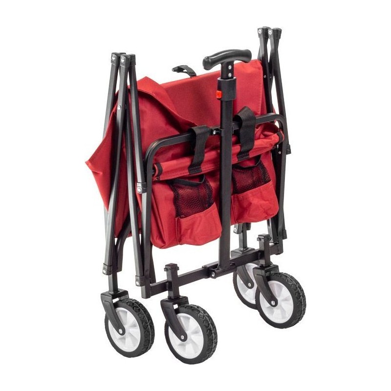 Der rote klappbare Transportwagen ist hilfreich beim Transport von Lasten bis zu 60 kg.