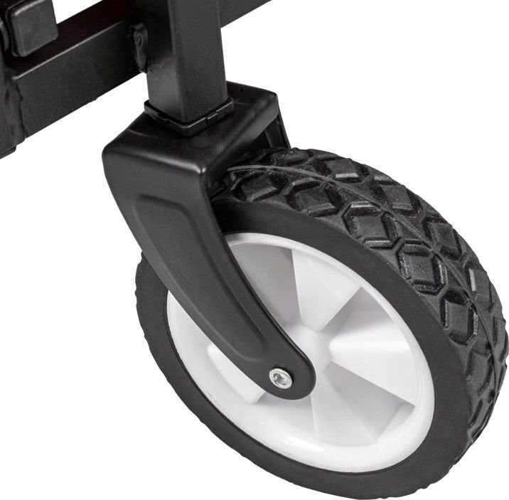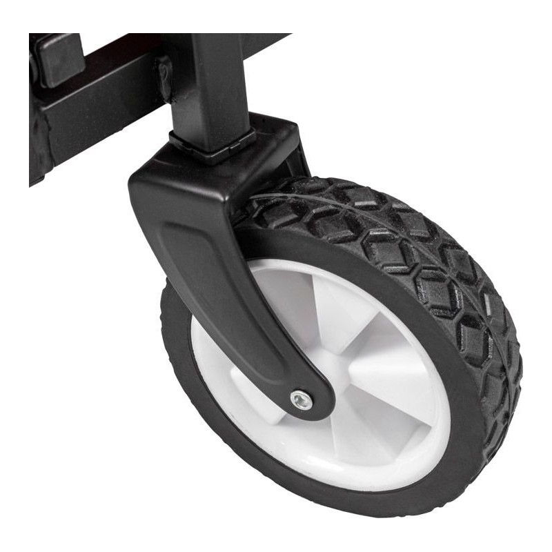 Dank der um 360° schwenkbaren Vorderräder lässt sich der Wagen problemlos lenken.