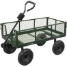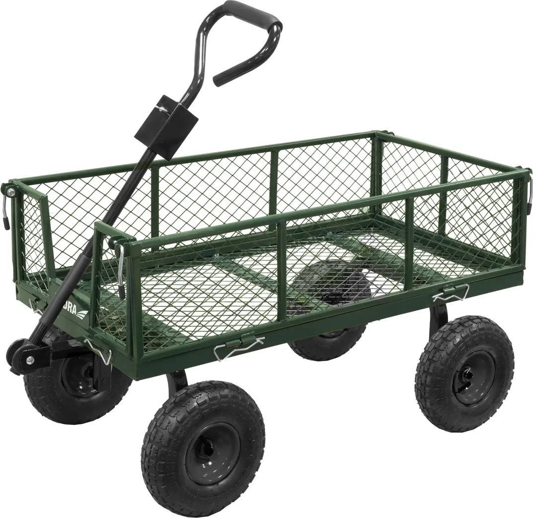 Dank seiner vier großen Gummiräder lässt er sich problemlos über unebenes Gelände bewegen und gewährleistet dabei die Stabilität der transportierten Ladung. Zudem sorgt die lenkbare Vorderachse für eine bessere Wendigkeit des Wagens, was wiederum das Manövrieren erleichtert.