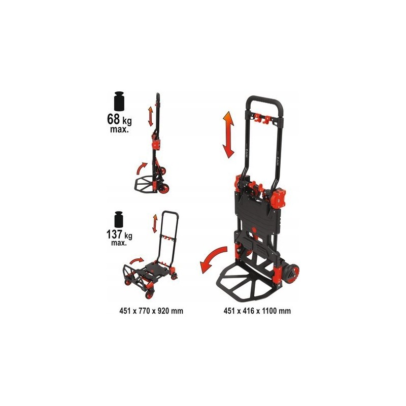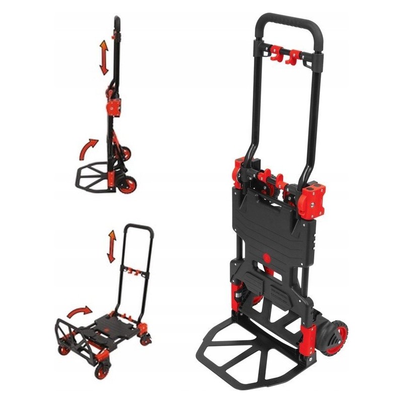 Praktischer 2-in-1-Lagerwagen – kann sowohl als Plattformwagen als auch als Handwagen verwendet werden. Zusammengeklappt nimmt er wenig Platz ein, was die Ordnung und den Transport des Wagens erleichtert. Die Räder aus TPR-Kunststoff beschädigen die Oberfläche, auf der sich der Wagen bewegt, nicht. Der ausziehbare Griff ist mit einem bequemen Kunststoffhandgriff versehen.