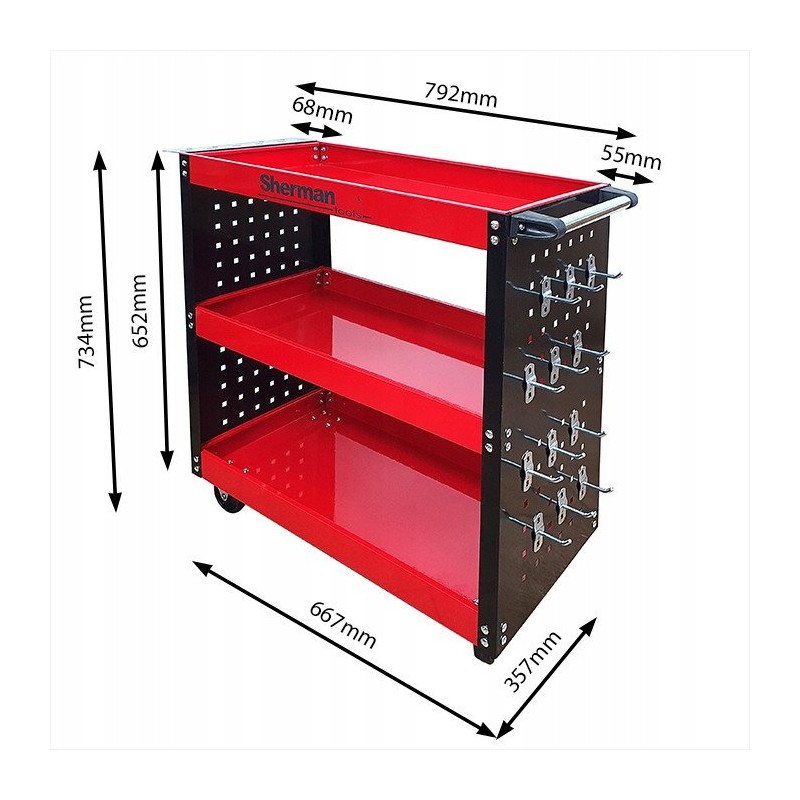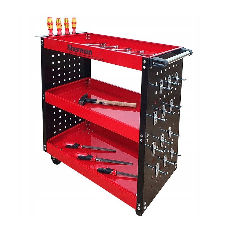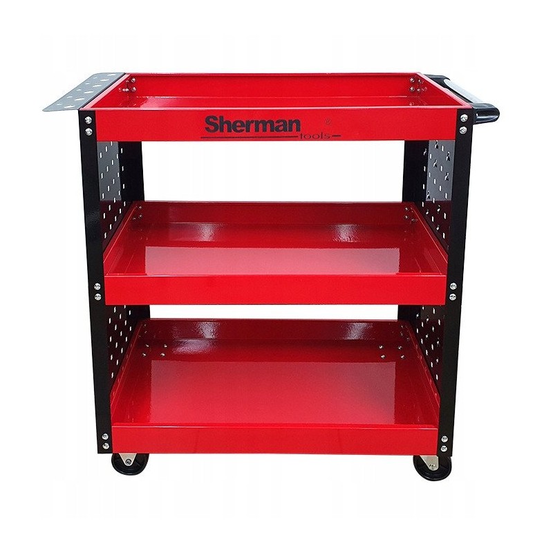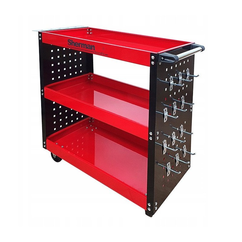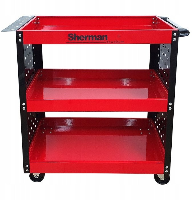 Werkstatt-Werkzeugwagen 3PA mit drei Ablagen in Rot und Sherman-Seitenwänden – Die ideale Lösung für die Organisation von Werkzeugen