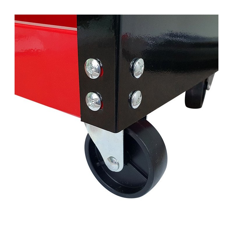 Der Werkzeugwagen 3PA ist mit vier Rädern ausgestattet, von denen zwei lenkbar sind, was eine einfache Manövrierbarkeit gewährleistet. So kannst du den Wagen frei in der Werkstatt bewegen, was die täglichen Aufgaben erheblich erleichtert.