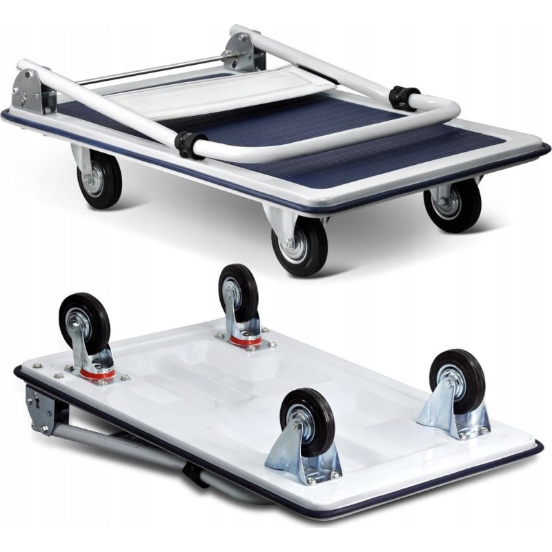 Der robuste Transportwagen der bekannten Marke GEKO eignet sich hervorragend für den Transport verschiedener Güter. Die Oberfläche der Plattform ist rutschfest, was für die Stabilität des Produkts sorgt. Der klappbare Griff spart Platz bei der Lagerung des Wagens. Eine Kunststoffabdeckung schützt die Plattform vor Kratzern. Der Wagen ist mit zwei Lenkrollen und zwei Bockrollen ausgestattet, was eine präzise Führung ermöglicht.