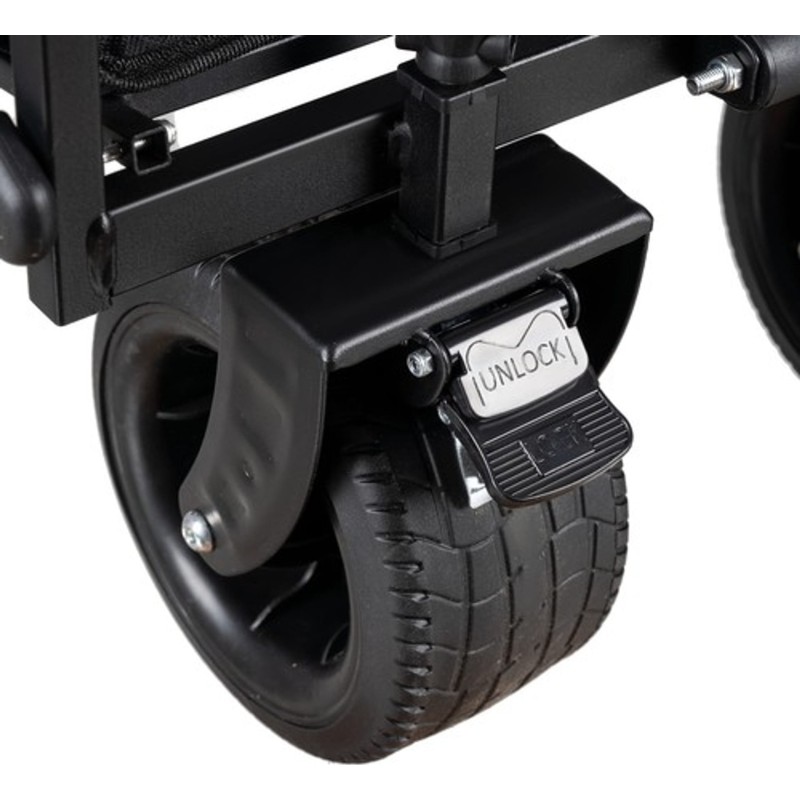 Die zusammenklappbare Konstruktion macht Lagerung und Transport extrem einfach, und im zusammengeklappten Zustand nimmt der Wagen nur wenig Platz ein. Dank seiner kompakten Abmessungen kannst du ihn überallhin mitnehmen, was ihn zum idealen Begleiter für Reisen macht.