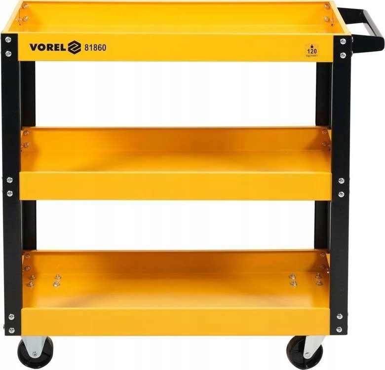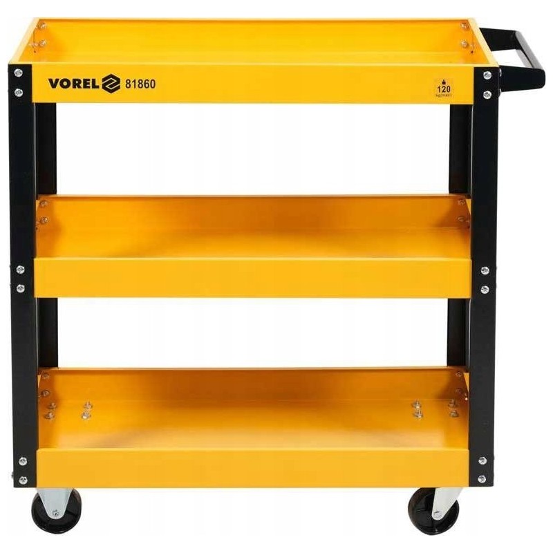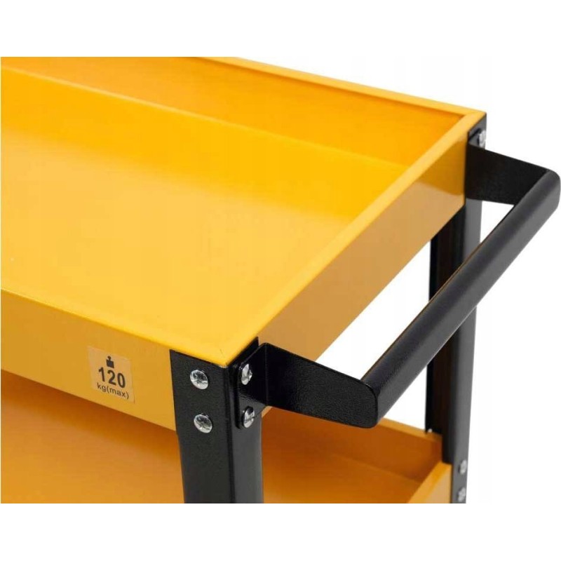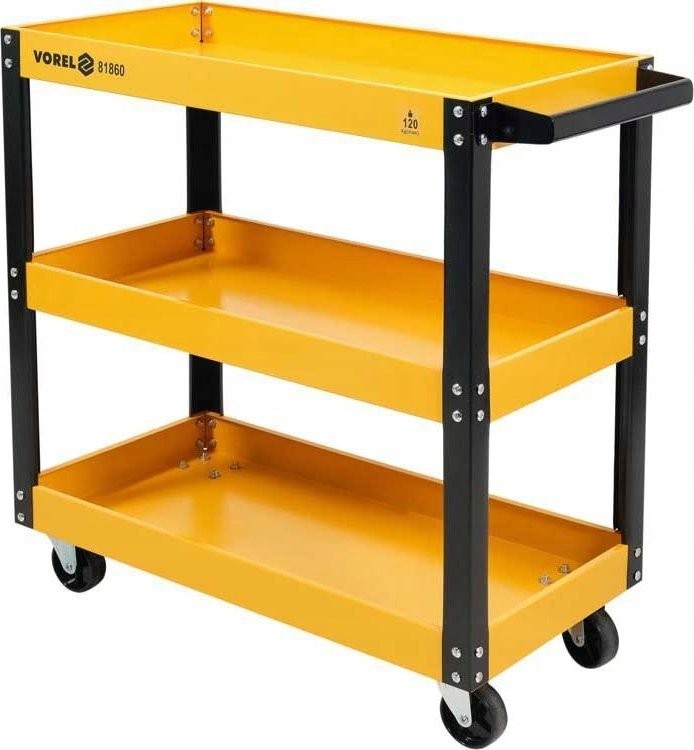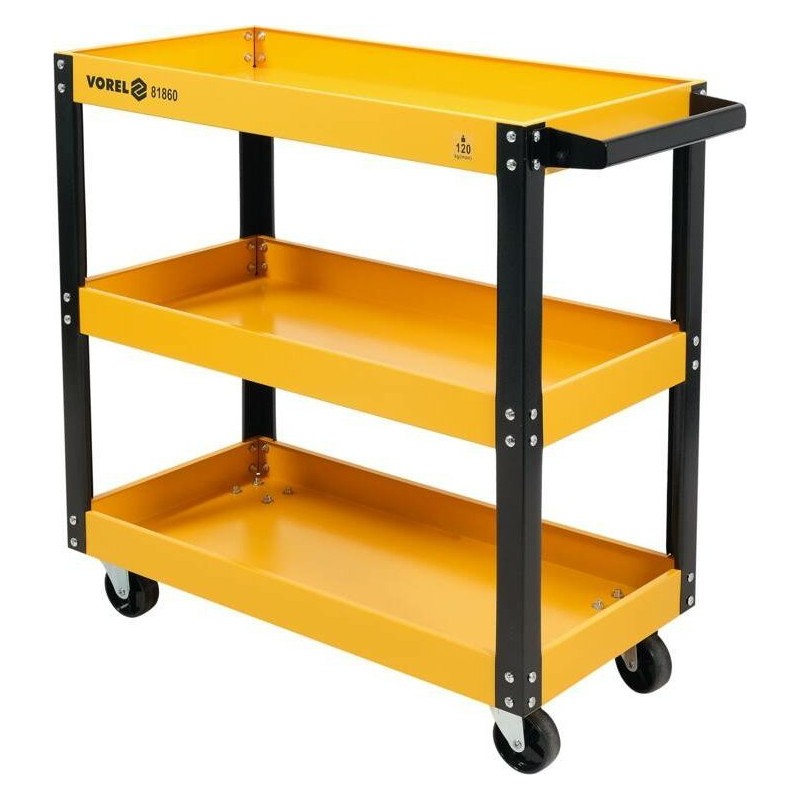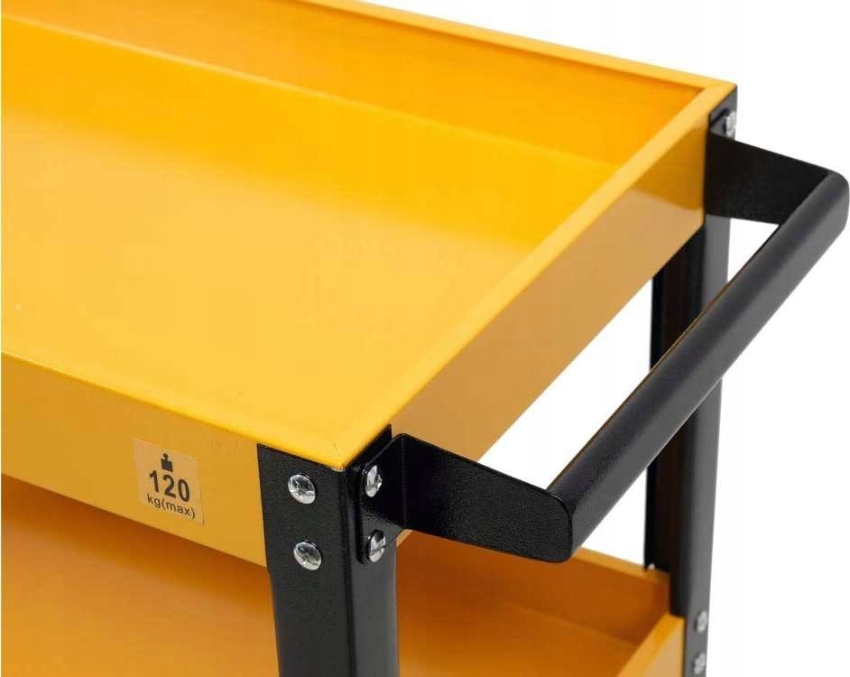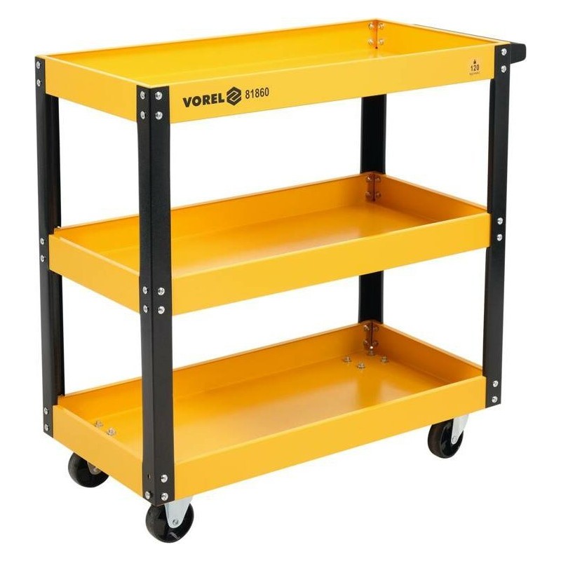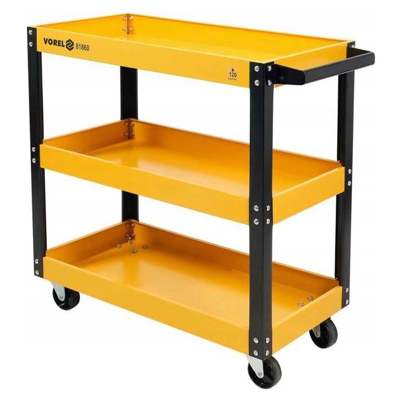 Praktischer, dreistufiger Werkstattwagen mit einer maximalen Tragkraft von 120 kg. Damit sind die für die Arbeit benötigten Werkzeuge immer griffbereit.