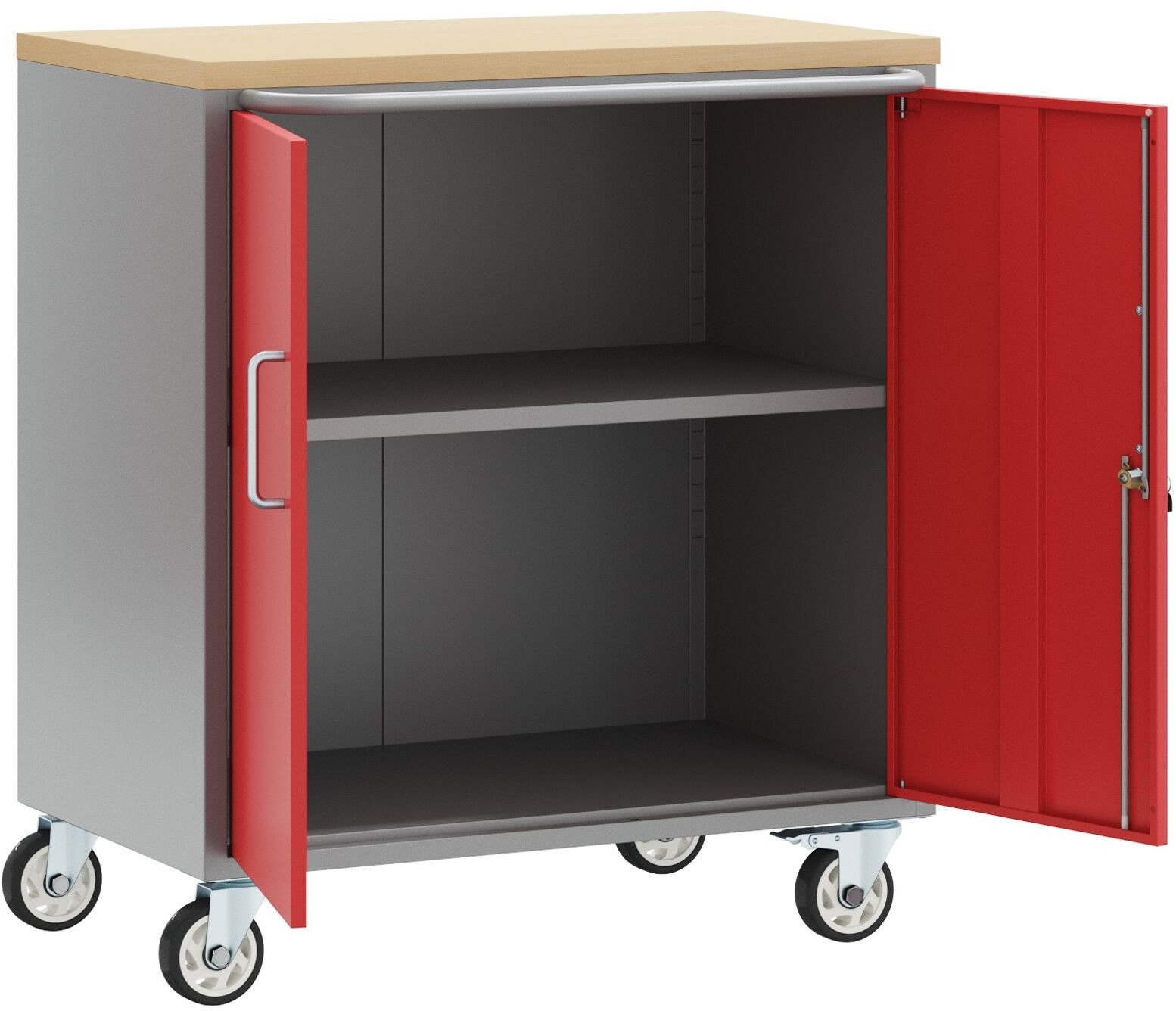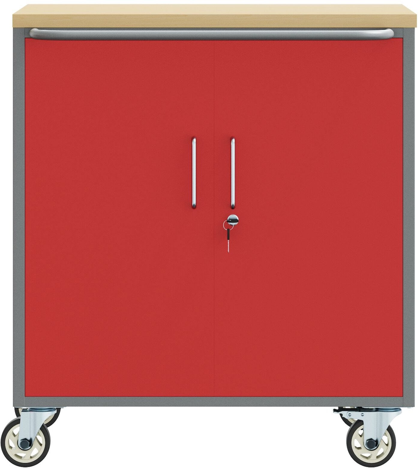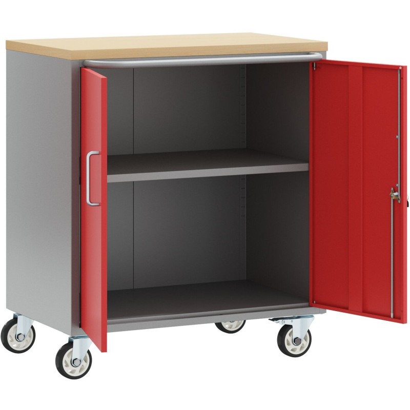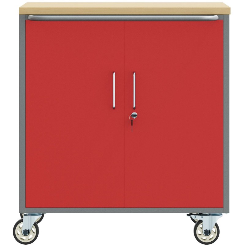 Werkzeugschrank auf Rollen mit Schloss, rot, 75 x 45 x 85 cm, aus Stahl