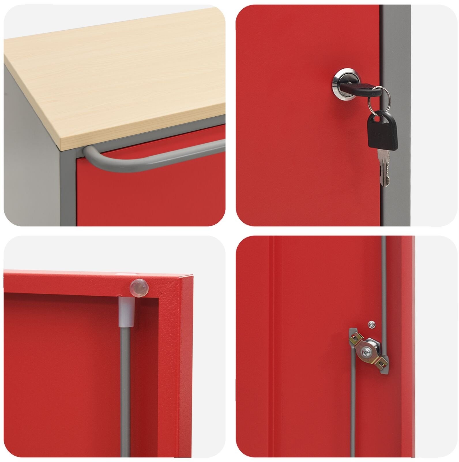 • Robuste Konstruktion: Hergestellt aus Stahl und Holzwerkstoffen, hält dieser Schrank dem täglichen Gebrauch stand und wird zu einem festen Bestandteil Ihrer Werkstatt.
