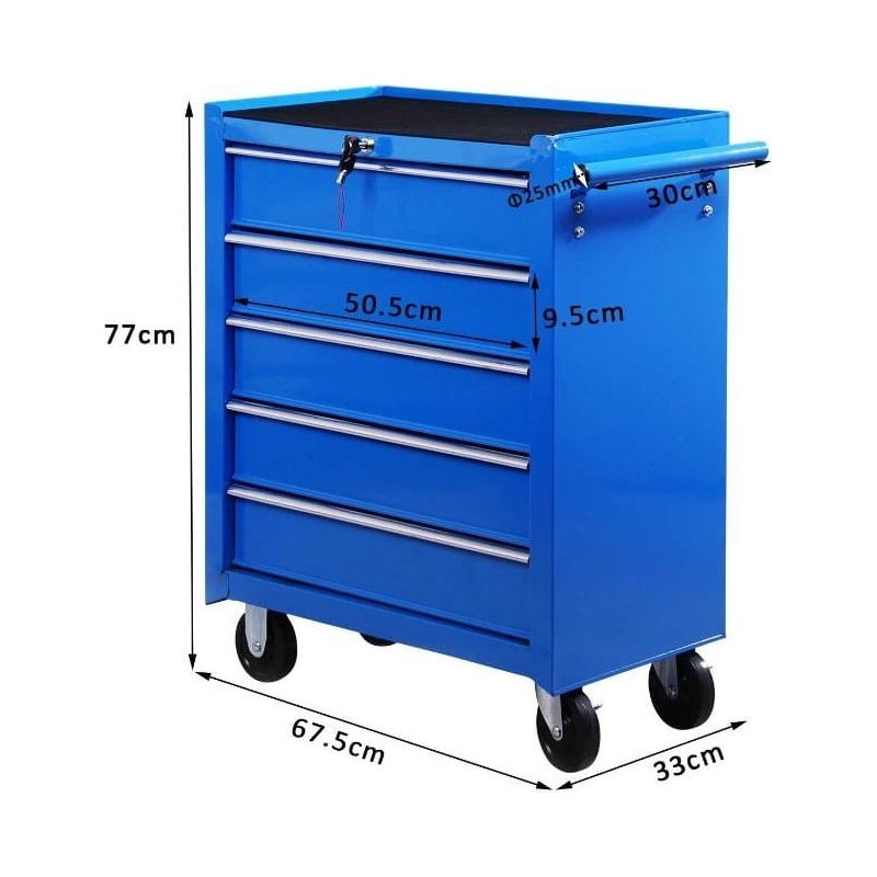 Jedes in der Werkstatt verwendete Werkzeug braucht seinen eigenen Platz, um für Ordnung zu sorgen. 5 Schubladen bieten jede Menge Platz für die unterschiedlichsten Werkzeuge. Außerdem ist der Schrank mit Rollen ausgestattet, sodass er problemlos von einem Ort zum anderen transportiert werden kann.