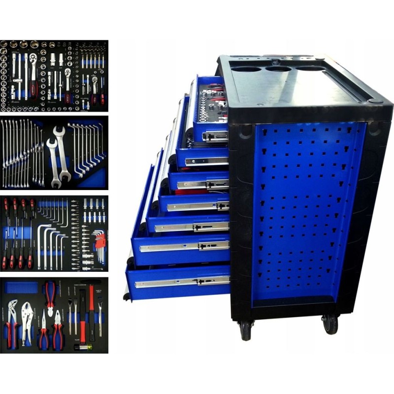 Dieser Wagen verfügt über verschiedene nützliche Zubehörteile von guter Qualität, die sofort nach dem Auspacken einsatzbereit sind. Da er bereits ausgestattet ist, müssen Sie keine Schraubenschlüssel, Steckschlüsseleinsätze und viele andere Werkzeuge, die Sie in Ihrer Werkstatt benötigen, zusätzlich kaufen.
