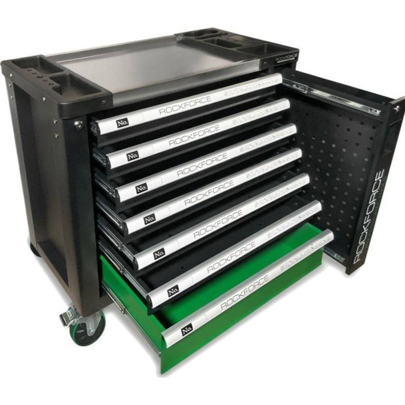Der Rockforce-Werkzeugwagen zeichnet sich durch eine robuste Konstruktion und ein großes Fassungsvermögen aus, was ihn zu einem unverzichtbaren Bestandteil jeder Werkstatt macht.