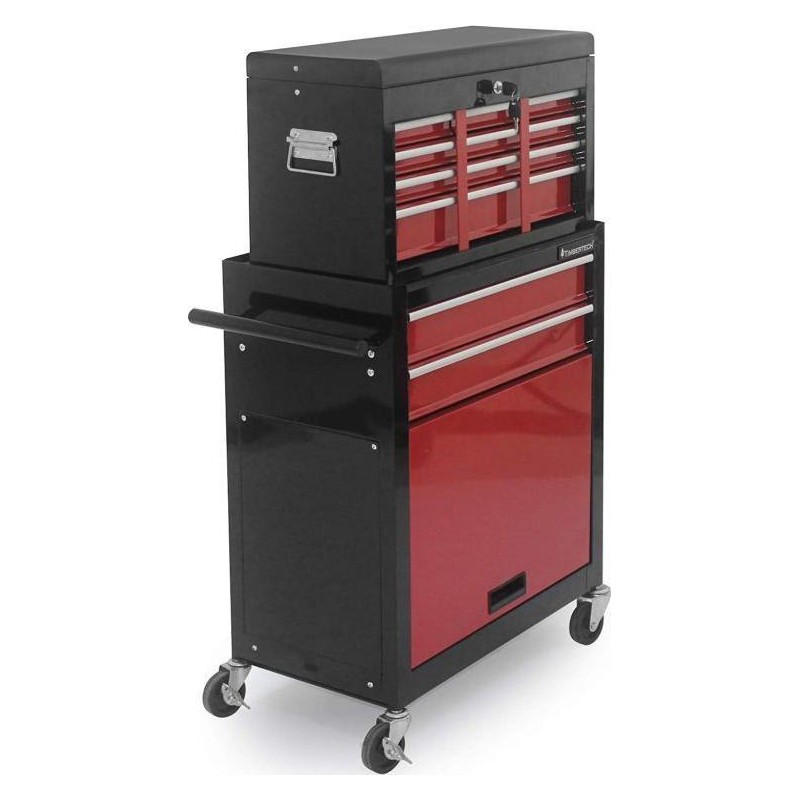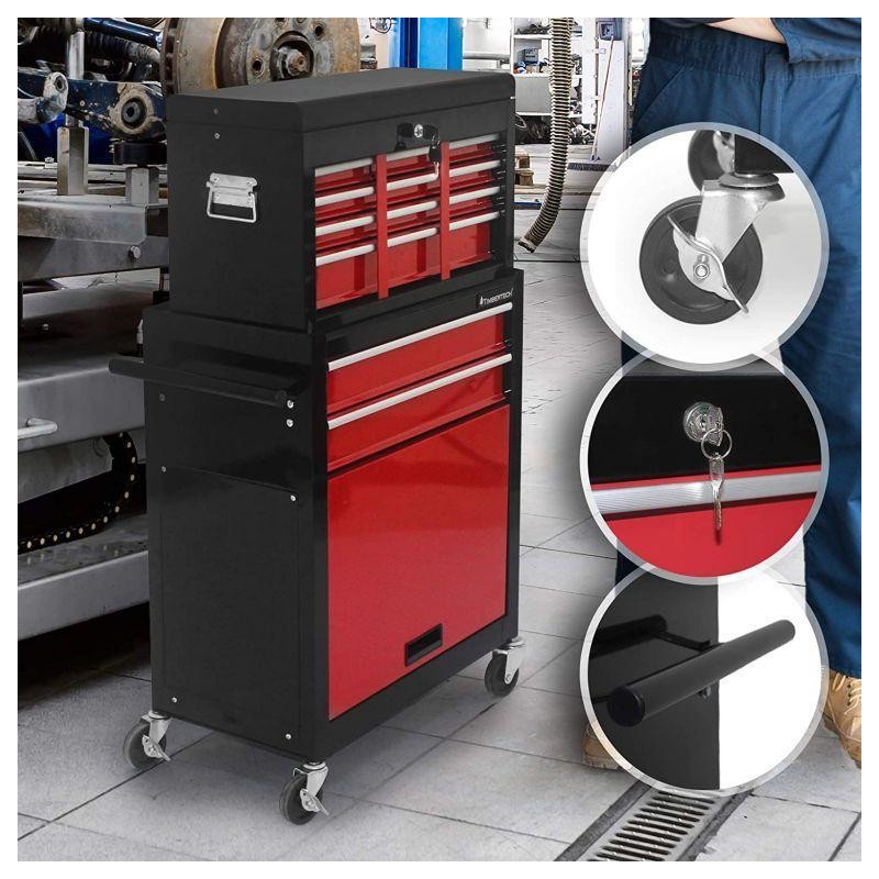 Praktische Aufbewahrungslösungen sind die ideale Ergänzung für jedes Zuhause oder Unternehmen. Gute Organisation bedeutet höhere Effizienz. Mit diesem Werkzeugwagen bringen Sie Ordnung in Ihre Werkstatt oder Ihren Arbeitsplatz. Der mobile Werkstattwagen aus robustem und widerstandsfähigem Stahl wird Ihnen viele Jahre lang gute Dienste leisten. Der praktische Montagewagen besteht aus zwei Schubladen sowie einem Fach mit Werkzeugkasten und ist mit einem Zentralverschluss und zwei Schlüsselsätzen ausgestattet.