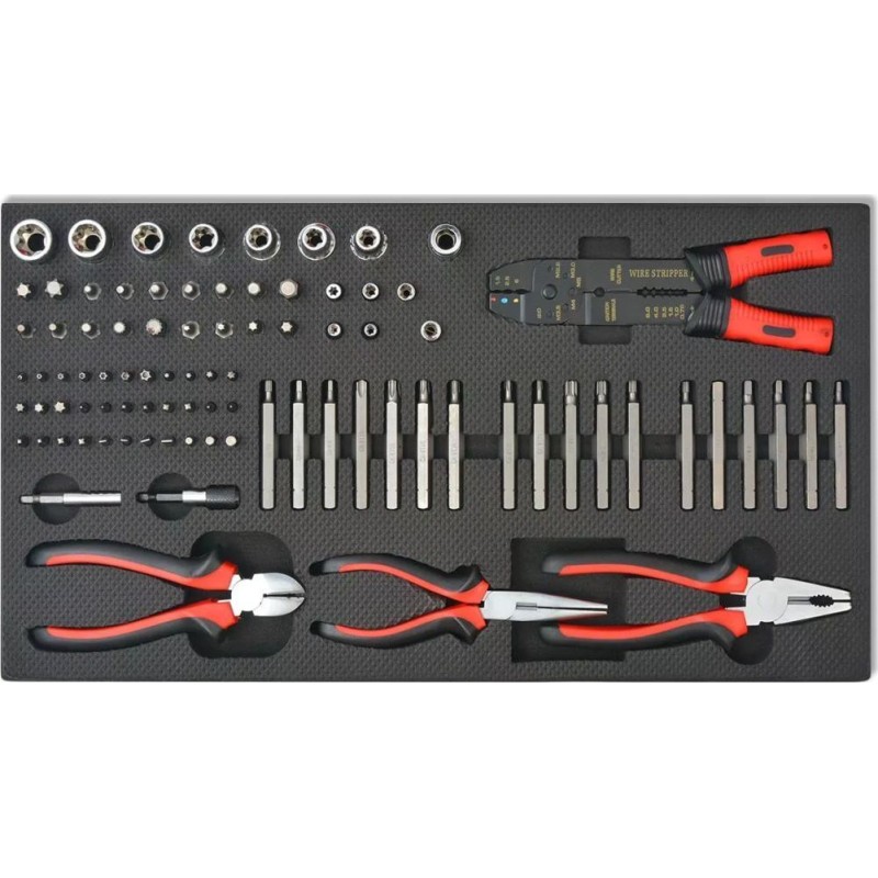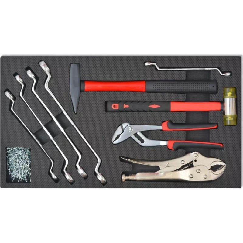 Dieser Wagen verfügt über verschiedene nützliche Zubehörteile von guter Qualität, die sofort nach dem Auspacken einsatzbereit sind. Da er bereits ausgestattet ist, musst du keine Schraubenschlüssel, Steckschlüsseleinsätze und viele andere Werkzeuge, die du in deiner Werkstatt benötigst, zusätzlich kaufen.