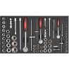 • 17 x Steckschlüsseleinsätze 1/2": 8, 9, 10, 11, 12, 13, 15, 16, 17, 19, 20, 21, 22, 24, 27, 30 und 32 mm
