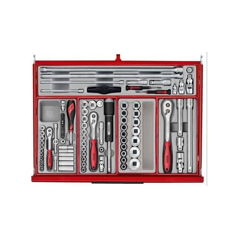 Dieser Wagen verfügt über verschiedene nützliche Zubehörteile von guter Qualität, die sofort nach dem Auspacken einsatzbereit sind. Da er bereits ausgestattet ist, müssen Sie keine Schraubenschlüssel, Steckschlüsseleinsätze und viele andere Werkzeuge, die Sie in Ihrer Werkstatt benötigen, zusätzlich kaufen.