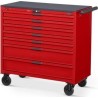 Hochwertiger Werkzeugwagen TCW207N aus rot lackiertem Stahl. Ausgestattet mit zwei feststehenden und zwei Lenkrollen (mit Bremse). Er verfügt über 7 kugelgelagerte, abschließbare Schubladen, die im Vergleich zu Standardwagen zusätzlichen Stauraum bieten. Außerdem ist ein zuverlässiges Zahlenschloss eingebaut. Jede Schublade verfügt über eine Bodenauskleidung aus Schaumgummi sowie einen Mechanismus, der verhindert, dass mehr als eine Schublade gleichzeitig herausgezogen werden kann. Der Wagen ist mit einem robusten Griff zum einfachen Transport ausgestattet. Eine Arbeitsplatte ist nicht enthalten.