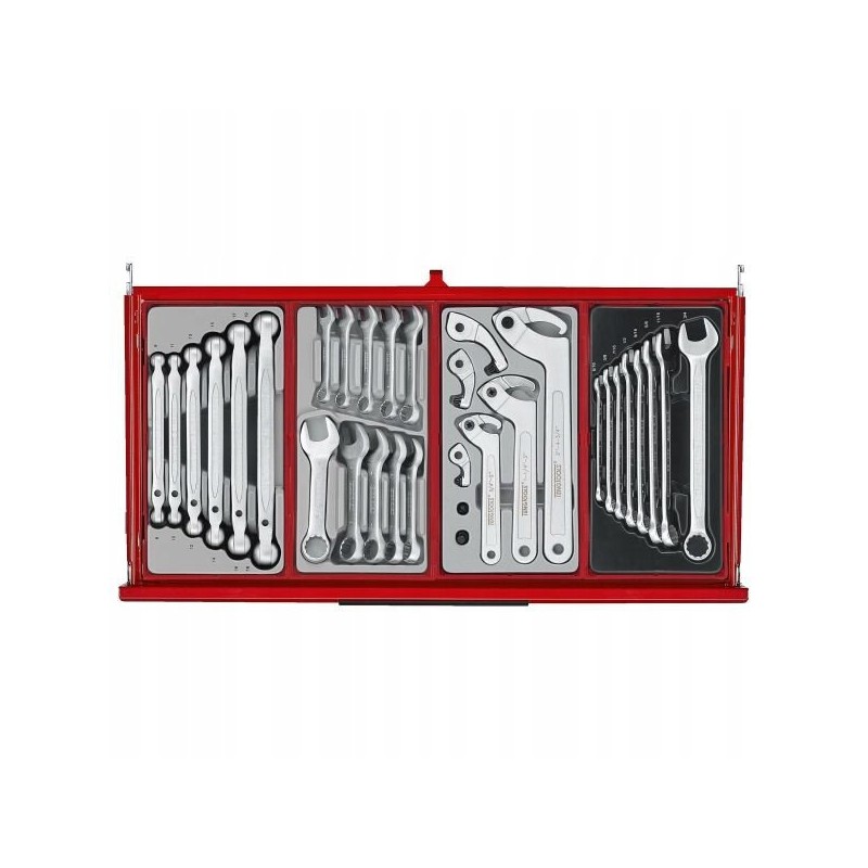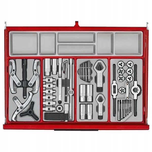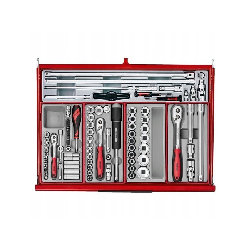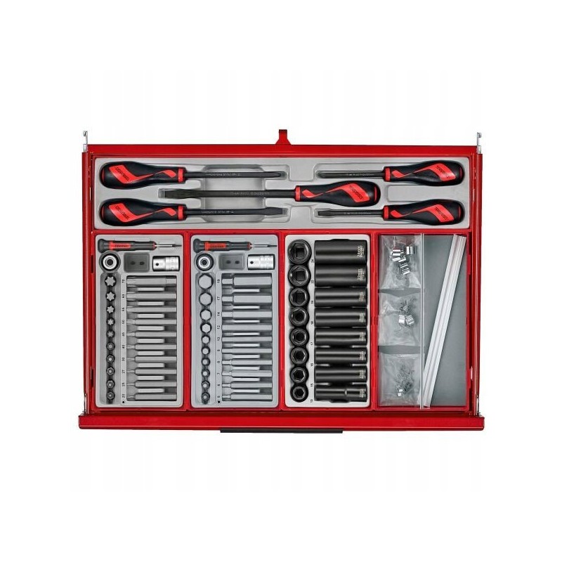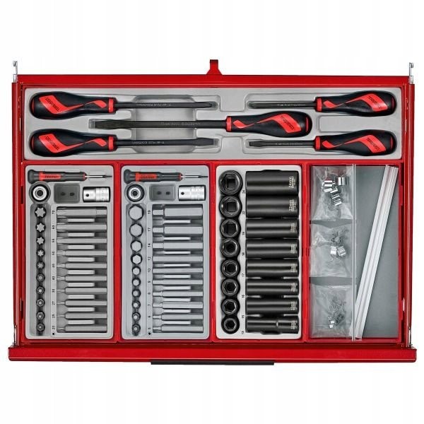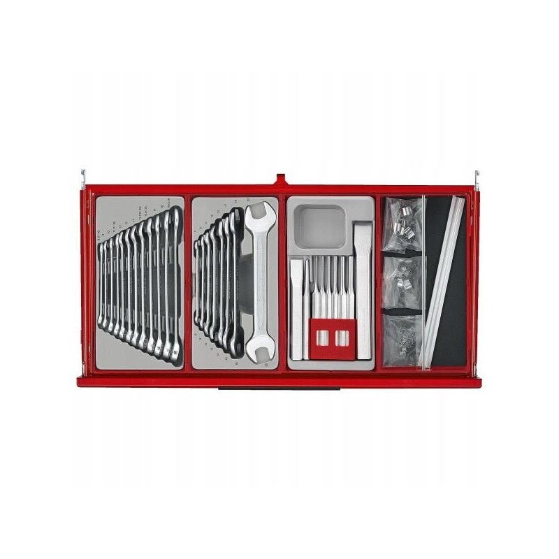 Dieser Wagen verfügt über verschiedene nützliche Zubehörteile von guter Qualität, die sofort nach dem Auspacken einsatzbereit sind. Da er bereits ausgestattet ist, müssen Sie keine Schraubenschlüssel, Steckschlüsseleinsätze und viele andere Werkzeuge, die Sie in Ihrer Werkstatt benötigen, zusätzlich kaufen.