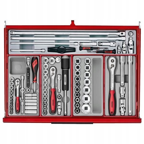 Jede der 16 Schubladen im Set verfügt über eine beeindruckende Tragkraft, sodass auch schwerere Werkzeuge ohne Beschädigungsgefahr aufbewahrt werden können. Dadurch eignet sich das Set ideal für den intensiven Einsatz unter verschiedenen Bedingungen.