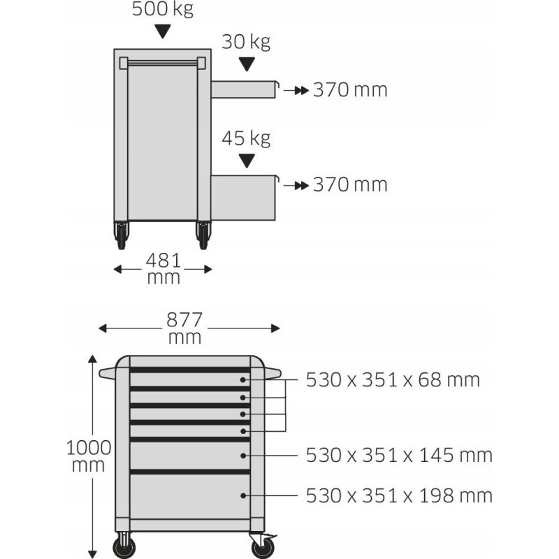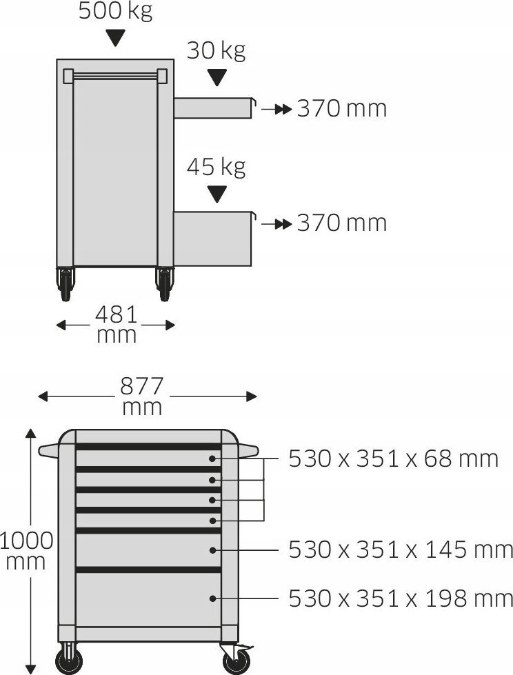Dieser Wagen verfügt über verschiedene nützliche Zubehörteile von guter Qualität, die sofort nach dem Auspacken einsatzbereit sind. Da er bereits ausgestattet ist, müssen Sie keine Schraubenschlüssel, Steckschlüsseleinsätze und viele andere Werkzeuge, die Sie in Ihrer Werkstatt benötigen, zusätzlich kaufen.