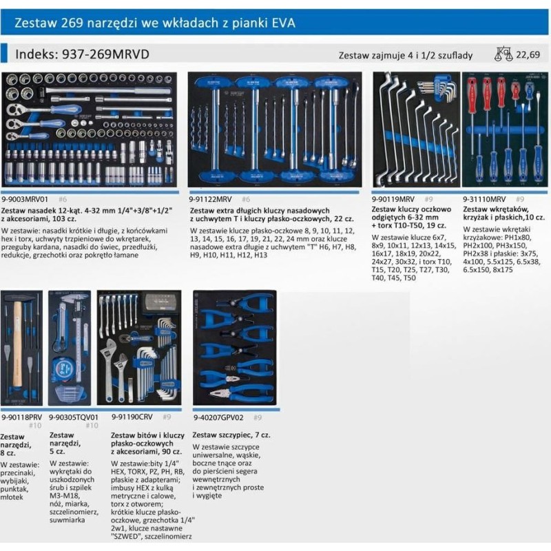 • Anzahl der Werkzeuge im Wagen 269 Stück