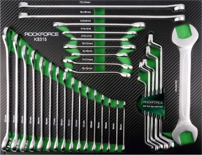 • Ring- und Flachschlüssel 16 Stück: 8, 9, 10, 11, 12, 13, 14, 15, 16, 17, 18, 19, 21, 22, 24, 27 mm