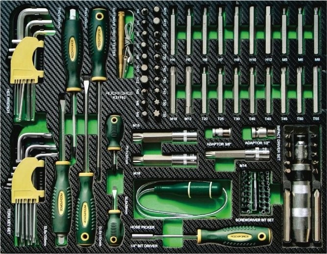 Er verfügt über 7 praktische, mit einem Schlüssel verschließbare Schubladen für Werkzeuge. Alle im Set enthaltenen Elemente sind aus robusten und langlebigen Materialien gefertigt, was sie von anderen ähnlichen Sets auf dem Markt abhebt.