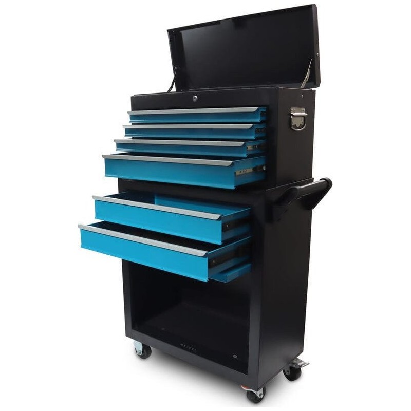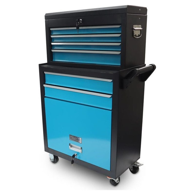 Das Set sorgt für eine vollständige Organisation der Werkzeuge in der Werkstatt oder Garage und verbindet Funktionalität mit Mobilität.