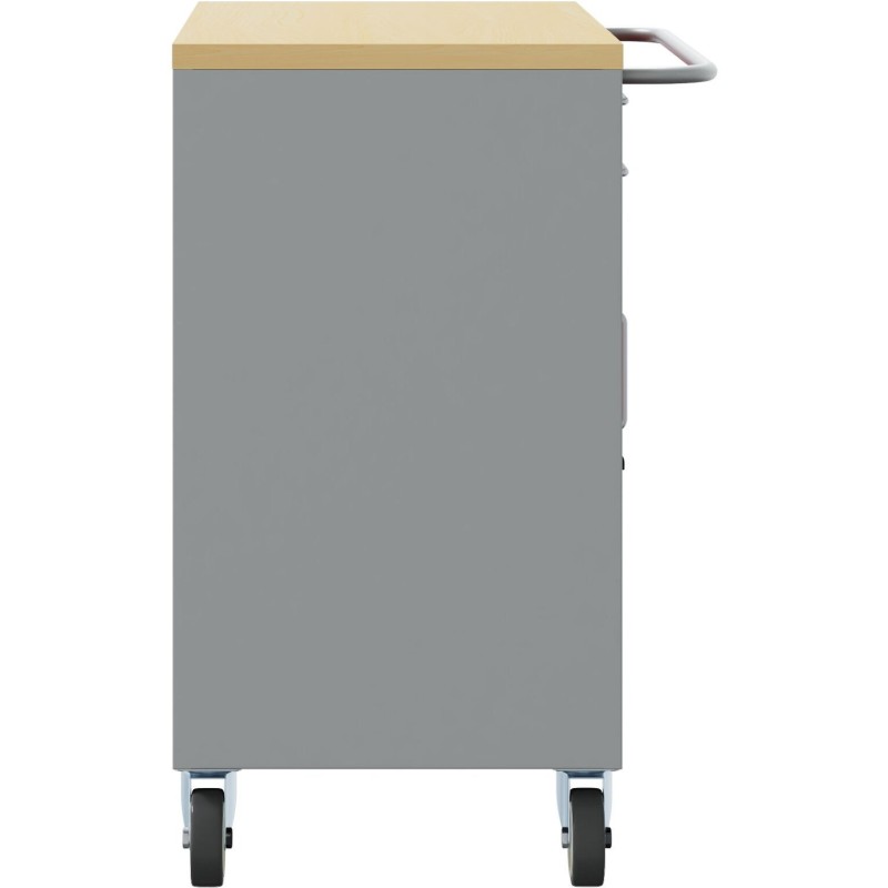 • Robuste Konstruktion: Hergestellt aus robustem Stahl und hitzebeständigem Holzwerkstoff, hält dieser Schrank den Strapazen der Werkstatt stand und verbindet Langlebigkeit mit elegantem Design.