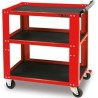 WERKZEUGWAGEN MIT DREI REGALEN, OFFEN, AUS STAHLBLECH, ROT LACKIERT, LEER,