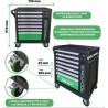 Dieser Wagen verfügt über verschiedene nützliche Zubehörteile von guter Qualität, die sofort nach dem Auspacken einsatzbereit sind. Da er bereits ausgestattet ist, müssen Sie keine Schraubenschlüssel, Steckschlüsseleinsätze und viele andere Werkzeuge, die Sie in Ihrer Werkstatt benötigen, zusätzlich kaufen.