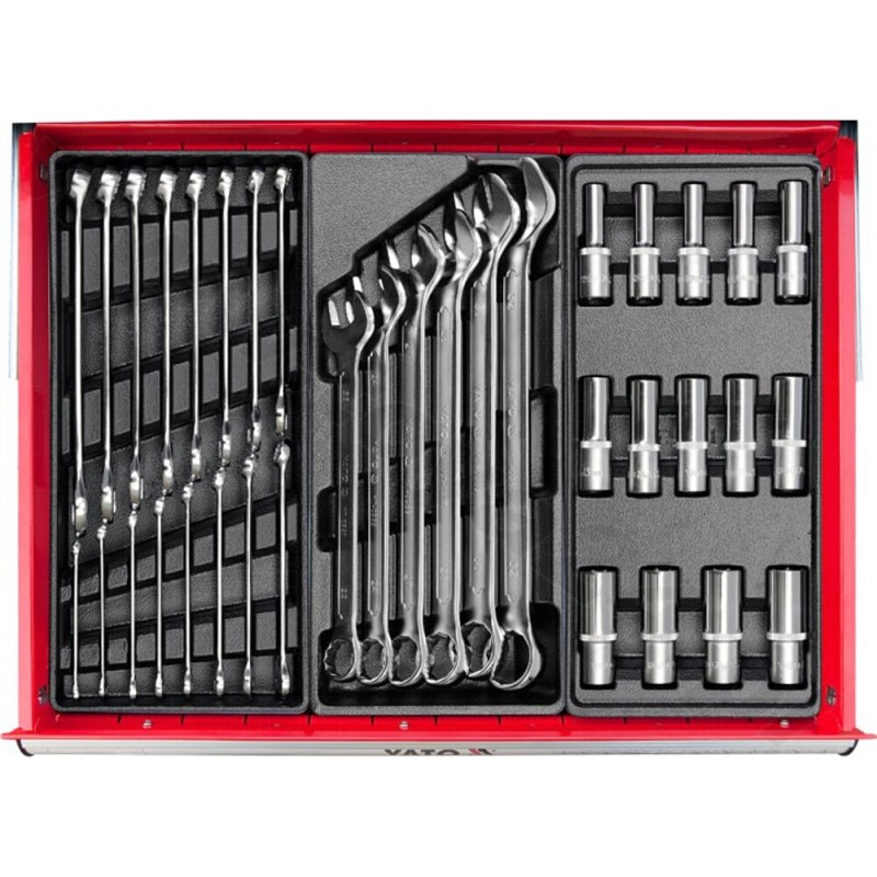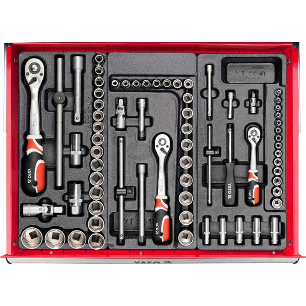 • YT-5537 Steckschlüsselsatz, 24-teilig: Steckschlüsseleinsätze und Zubehör 1/2'', Schublade,