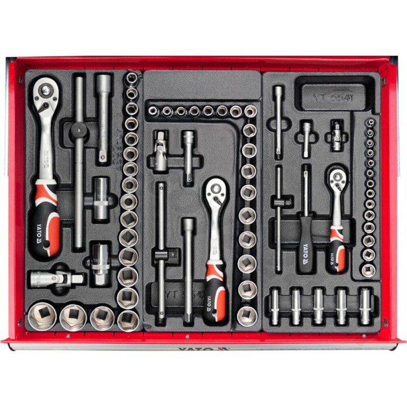 • YT-5542 Steckschlüsselsatz 22-teilig: Steckschlüsseleinsätze und Zubehör 3/8'', Schublade,