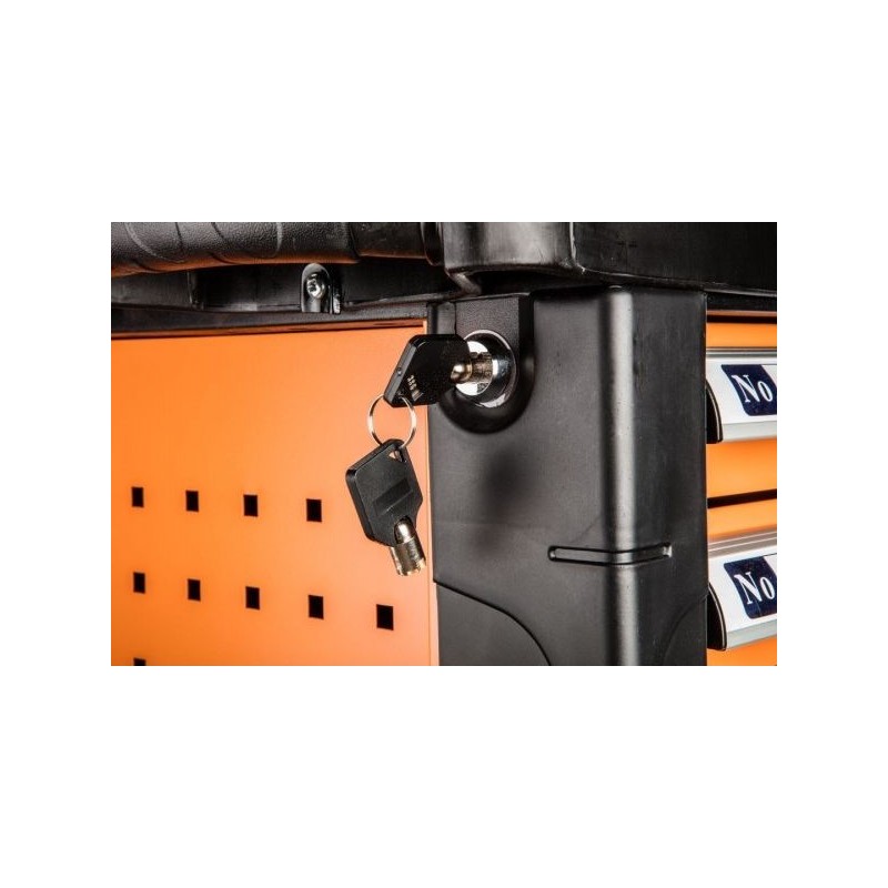 • Der Schrank verfügt über 6 praktische Schubladen für Werkzeuge, die mit einem Zentralverschluss gesichert werden
