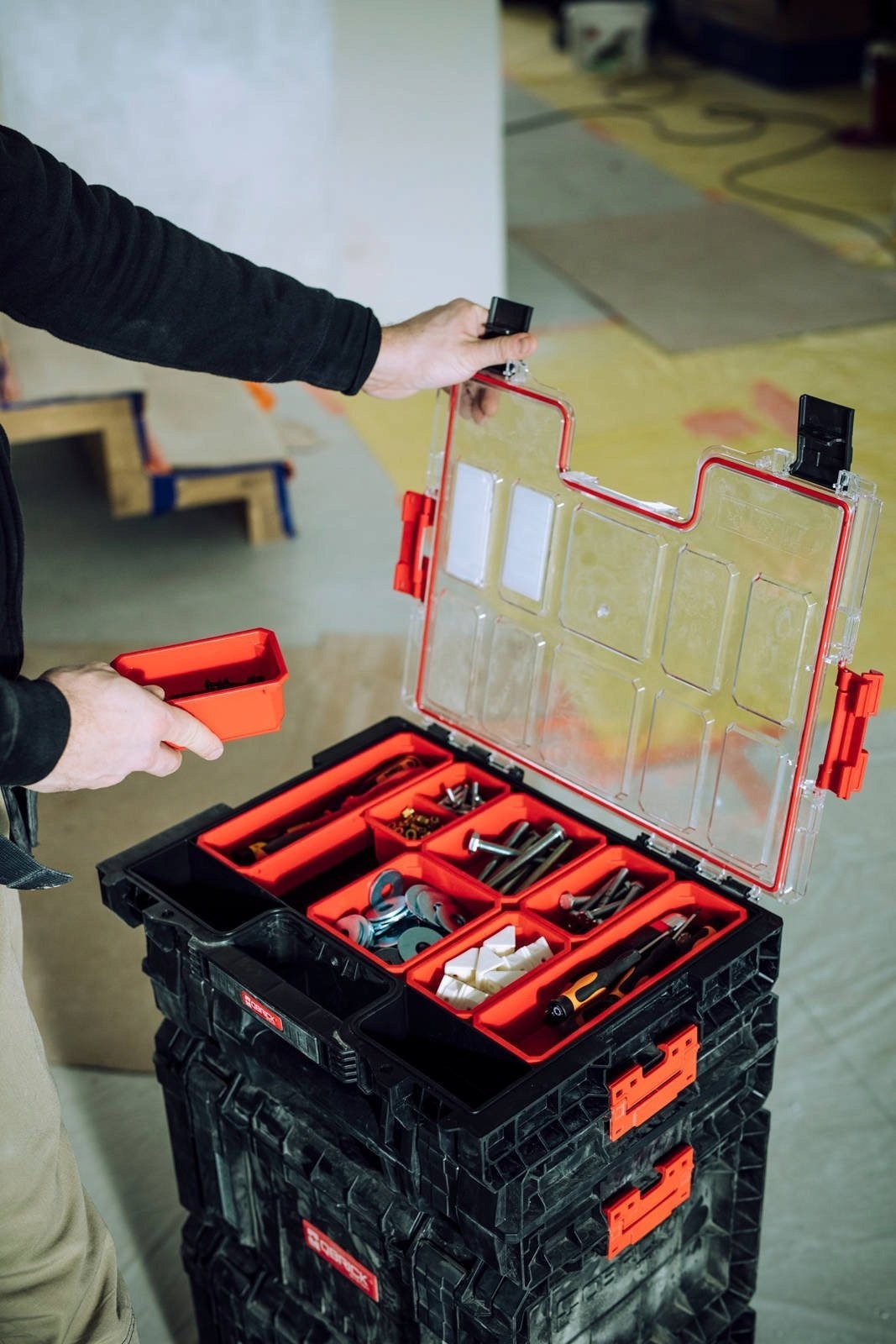 Das Qbrick System ist ein neues Angebot auf dem Markt für professionelle Systeme zur Aufbewahrung und zum Transport von Werkzeugen. Dank unserer über 20-jährigen Erfahrung können wir einzigartige Lösungen anbieten, die den Komfort und die Effizienz der täglichen Arbeit von Fachleuten aus verschiedenen Branchen und Bereichen verbessern. Alle Produkte des Qbrick Systems zeichnen sich durch durchdachte Lösungen und hohe Ergonomie aus. Darüber hinaus sind die Module der Basisproduktlinien modular aufgebaut, sodass Sie selbst entscheiden können, wie Sie Ihre Kisten konfigurieren möchten.