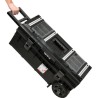 • Ein praktischer Griff und 2 gummibeschichtete Räder sorgen für Wendigkeit und ermöglichen den bequemen Transport selbst schwerer Werkzeuge