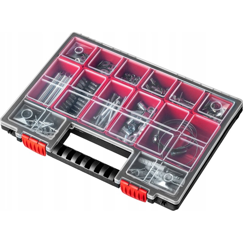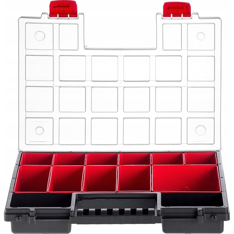 ROBUST – Der Korpus und der transparente Deckel bestehen aus robustem Kunststoff. Der Werkzeugorganizer verfügt über stabile Verschlüsse, die den Deckel sichern und den Inhalt zuverlässig vor unerwartetem Herausfallen schützen.