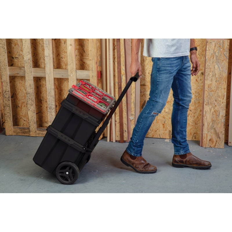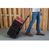 Dadurch öffnet sich die Kiste nicht bei rauer Fahrt oder schnellem Transport. Darüber hinaus sorgt der bequeme Teleskopgriff dafür, dass Sie die Kiste transportieren können, ohne sich bücken zu müssen. Im geräumigen Innenraum können Sie alle notwendigen Werkzeuge aufbewahren – und haben sie griffbereit!
