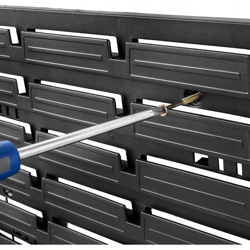ROBUSTE KONSTRUKTION – Die Werkstatt-Werkzeugwand besteht aus strapazierfähigem PP-Kunststoff. Dieser ist beständig gegen Chemikalien, UV-Strahlung und Beschädigungen, sodass Sie lange Freude daran haben werden.