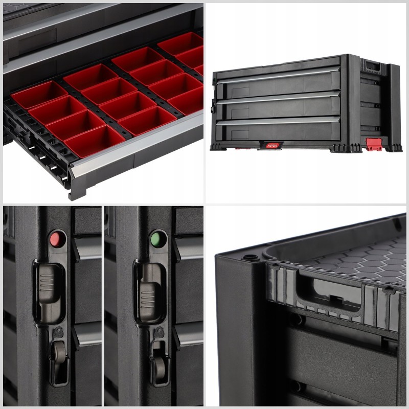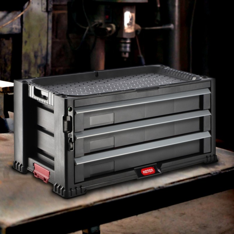 Funktionale Fächer und Behälter aus robustem Kunststoff sorgen für Ordnung und ermöglichen dir den schnellen Zugriff auf die Dinge, die du brauchst. Kurz gesagt: Du hast alles griffbereit, vermeidest Unordnung und deine Arbeit und Heimwerkerprojekte laufen reibungsloser ab.