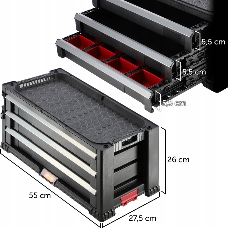 • 3 praktische Schubladen für Werkzeuge und anderes Zubehör