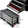 Der Schrank kann mit einem Vorhängeschloss verschlossen werden, um den Inhalt vor dem Zugriff Dritter zu schützen. Darüber hinaus verfügt jede Schublade über eine Arretierung, die verhindert, dass Werkzeuge herausfallen und es während der Arbeit zu Verletzungen kommt. Entscheiden Sie sich für unseren Werkzeugschrank, arbeiten Sie bequemer und bewahren Sie Ihr Zubehör sicher auf!