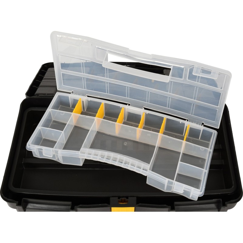 Unabhängig davon, ob es um die praktische Handhabung beim Transport oder beim Einräumen geht, ist die Transparenz des Materials, aus dem der Organizer gefertigt ist, ein sehr wichtiger und praktischer Vorteil. Die in einem solchen Produkt untergebrachten Gegenstände sind sehr gut sichtbar und auf dem Regal leicht zu finden. So müssen Sie sich nie wieder mit der Suche nach dem richtigen Gegenstand abmühen; ein Blick auf die Box genügt, und Sie finden sofort, was Sie suchen. Und das alles, ohne den Organizer selbst öffnen zu müssen. Das steigert Ihre Arbeitseffizienz.