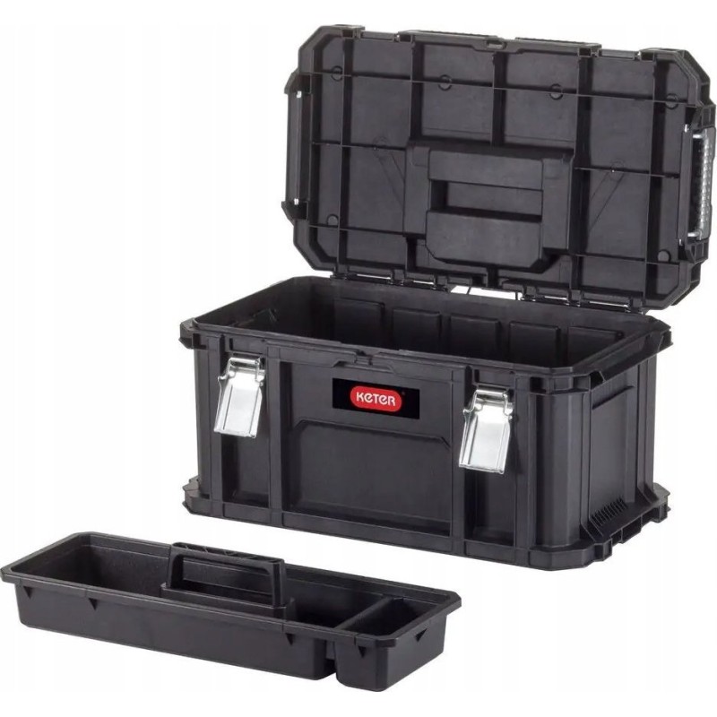 Die Kiste wurde so konzipiert, dass du deine Werkzeuge bequem und sicher aufbewahren und ordnen kannst. Im Inneren befindet sich ein herausnehmbarer Einsatz, der zusätzlichen Platz für Zubehör bietet.